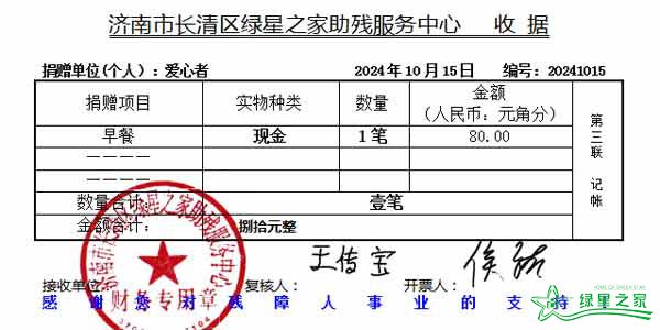 10月15日,一位未透露姓名的和尚师傅为绿星之家捐助80元,用于无定向支出。