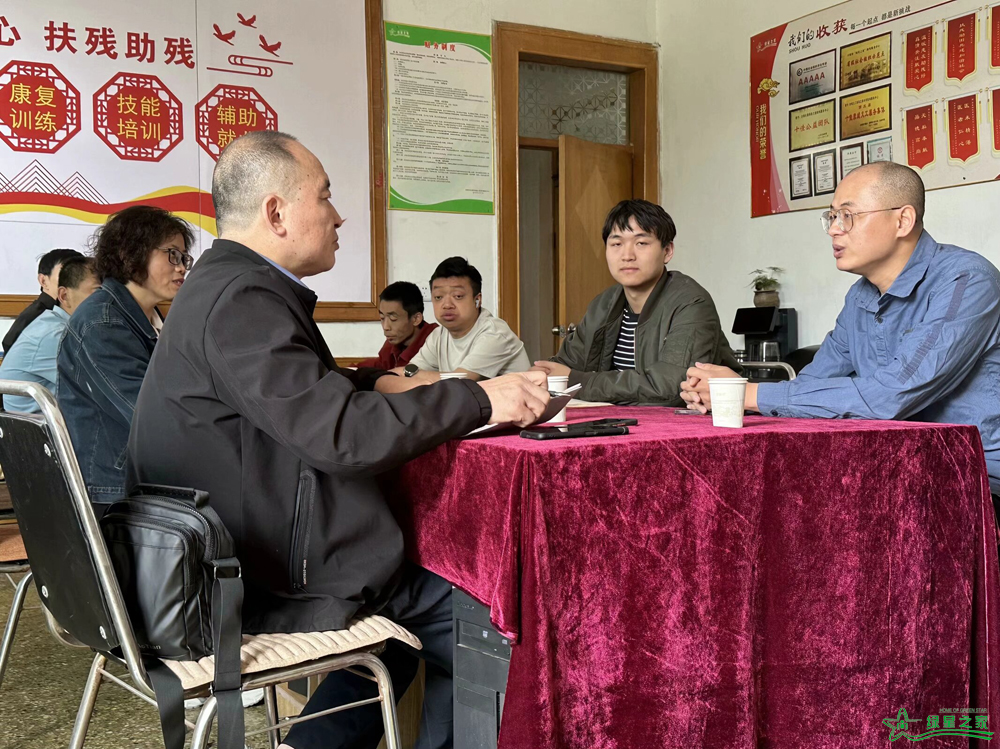 绿星之家负责人齐乾坤为来访者讲述了绿星之家——这个由农村残友推动成立的社会组织的发展历程、创业故事及开展残友日常照料、党建工作的心得体会。