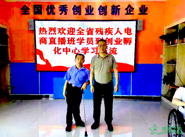 王传宝(左)与广强残疾人创业孵化中心创办人钱广强合影留念