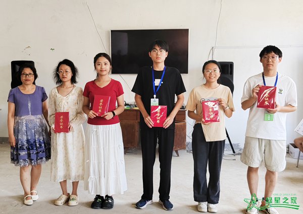 绿星之家副理事长侯洁(左一)为志愿者们颁发荣誉证书